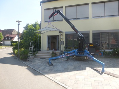 Wie machen wir das? Mit modernstem Equipment, vor allem mit dem Glasboy 510. Der Raupenkran mit Vakuumsauger kann nahezu jede Hebe- und Montagesituation im Innen- und Außenbereich bedienen. Dank seiner geringen Abmessungen ist er flexibel und vielfältig einsetzbar. Montage, Ein- und Ausbau erledigen wir reibungslos.
